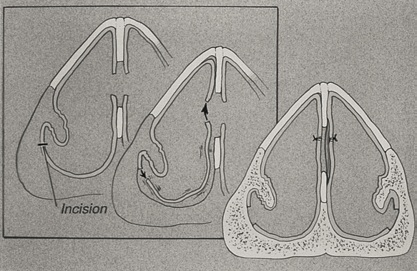 3. 手術方式(小洞): 如破損較小,可使用局部擴張或轉位(local flap),在內視鏡下以鼻中隔黏膜皮瓣或下鼻甲皮瓣修補。