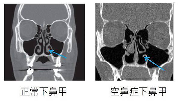 在了解空鼻症之前,我們先來了解一下鼻甲的作用(也就是鼻肉),鼻腔中的鼻甲有著濕潤、調節溫度、過濾空氣、控制氣流和感應氣流等作用。鼻甲能夠保護鼻內粘膜,幫助其休息及再生。正常的成年人鼻腔能夠在24小時內處理1萬升空氣,因此鼻粘膜需要有一定的休息期,才可保證呼吸上皮的健康。這種間斷的休息期稱為鼻週期。每30分鐘至3小時,兩側的黏膜會交互充血,充血的那側黏膜可以休息和再生,沒有充血的那一邊則進行大部份的呼吸工作。如果鼻甲黏膜被破壞或過度切除,鼻週期無法使血液完全充盈受損的一邊,因此喪失自然再生的能力,這時病患可能會出現鼻腔異常且慢性的乾燥,甚至有的人會出現嚴重的鼻塞。