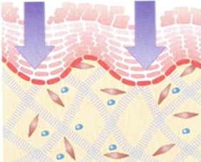 真皮層中玻尿酸、膠原蛋白等大量流失。