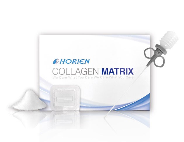 膠原蛋白基質粉(Collagen Matrix)為萃取自豬腳筋純化的I型天然膠原蛋白纖維,屬於白色,多孔狀的傷口敷料,處理過程經過r輻射滅菌,具有良好的生物相容性。本敷料產品主要應用在局部性淺層傷口護理, 適用於傷口照護, 並具有高孔隙度, 可吸附滲出液, 維持傷口的濕潤及覆蓋, 且不沾黏傷口。天然之膠原蛋白特性會促進血小板凝聚與活化, 可吸收滲出之血/體液,提供立體結構空間促進血塊凝集並加強其凝集強度。